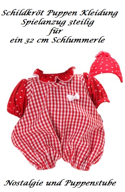 Puppen Kleider rot karierter Spielanzug für 32 cm Schlummerle Schildkröt, Nr. 32512 - Bild vergrößern